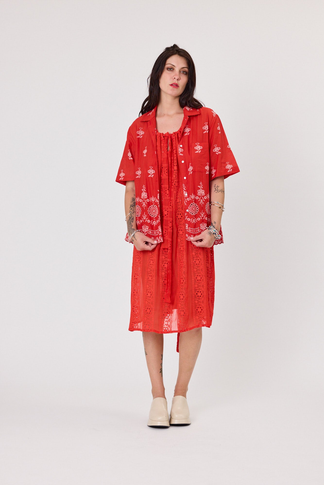 The Story: This shirt holds the energy of Summer - vibrant strawberry adorned with blush embroidery that tells stories of artisan traditions passed down through generations. It's the piece that makes everything else in your wardrobe more interesting, the foundation that transforms simple into sublime.